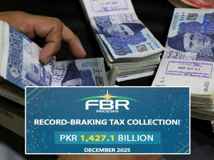 دسمبر 2025 میں 1,427.1 ارب روپے ٹیکس وصول کیا جو ماہانہ ہدف 1,446 ارب روپے کا 99 فیصد ہے