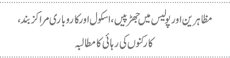 مظاہرین اورپولیس میں جھڑپیں، اسکول اورکاروباری مراکزبند، کارکنوں کی رہائی کا مطالبہ