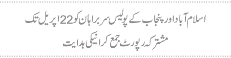 اسلام آباد اور پنجاب کے پولیس سربراہان کو 22 اپریل تک مشترکہ رپورٹ جمع کرانیکی ہدایت.