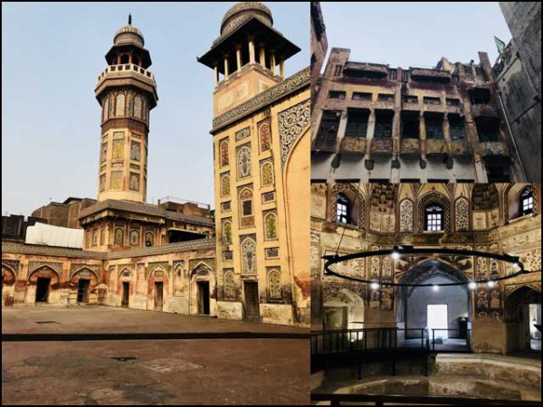 شاہی حمام میں داخل ہوئے تو گارڈ نے ٹکٹ خریدنے کا کہا۔ ہم نے یونیورسٹی کارڈ دکھاتے ہوۓ سو روپے میں پانچ ٹکٹ خریدلیے۔ ابھی وزیر خان مسجد کی دیواروں کی خوبصورتی آنکھوں کے سامنے ہی رقصاں تھی کہ شاہی حمام کی دیواریں بھی دلکش منظر پیش کرنے لگیں۔ حمام کے اندر روشنی کچھ کم تھی لیکن منظر دلفریب تھا۔