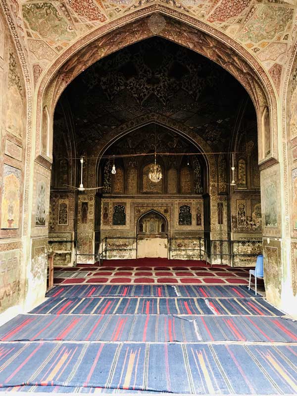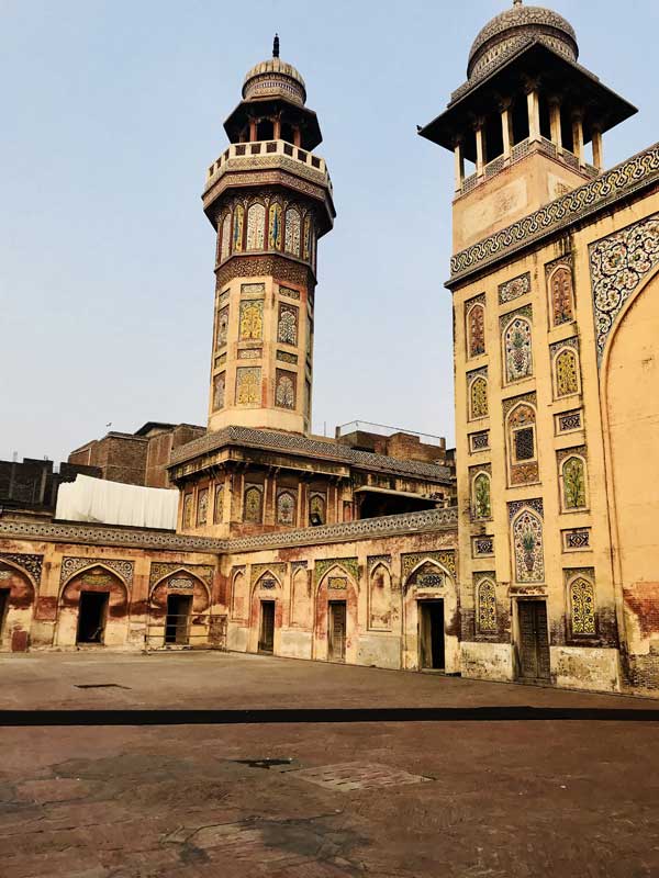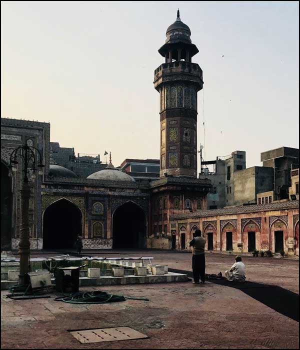 خیر! ہم سب دوست اندر داخل ہو گئے۔ مسجد کی دیواروں سے لے کر اندر تک پوری مسجد کا جائزہ لیا، ذہن میں کئی سوال آئے کہ یار اسے بنانے والے کتنے خوش نصیب اور عظیم ہوں گے۔ دل نے تو یہ بھی کہا کیوں نہ درویش بن کر یہیں بسیرا کرلیا جائے۔ میں اپنے موبائل سے کیمرے کا رول ادا کرواتے ہوئے تصویریں کیھنچنے لگا۔ مسجد کے اسپیکر سے اذان کی صدا آنے لگی، ہم نے وضو کیا اور عصر کی نماز ادا کی۔ سورج ڈھل رہا تھا اور یہی وہ وقت تھا جب سورج کی کرنیں مسجد وزیر خان کو اور بھی زیادہ خوبصورت بنارہی تھیں۔