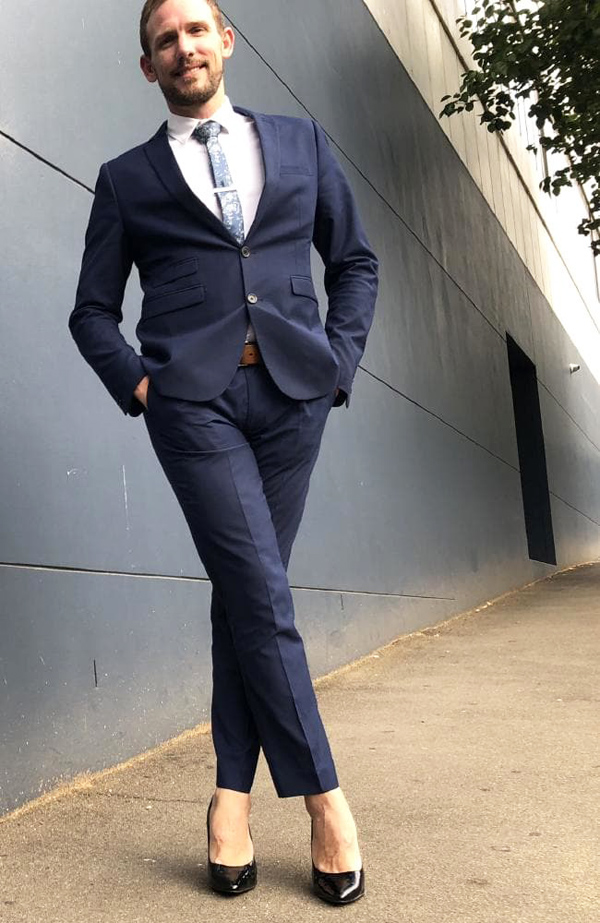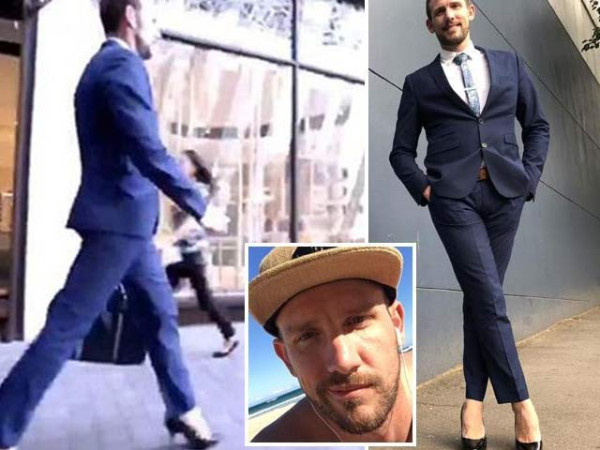 سڈنی میں بینک کے پروجیکٹ مینیجر ایشلے میکس ویل خواتین کے جوتے پہن کر دفتر جاتے ہیں۔ فوٹو: آسٹریلیا نیوز