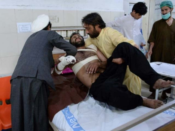 کرکٹ میچ کے دوران راکٹ حملے میں زخمی افراد کو جلال آباد کے ایک اسپتال میں طبی امداد دی جا رہی ہے۔فوٹو : اے ایف پی