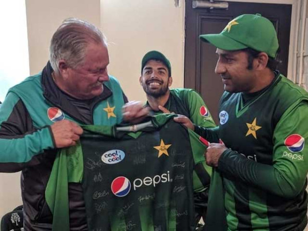 کپتان سرفراز احمد نے انہیں کھلاڑیوں کے دستخطوں سے مزین قومی ٹیم کی ٹی شرٹ پیش کی