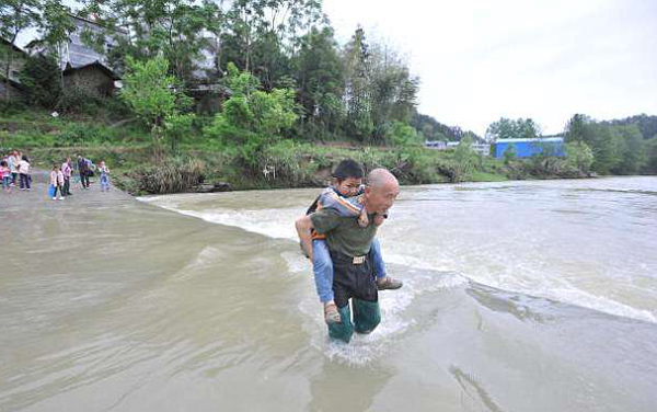 ایک طالب علم ژیانگ چونیانگ نے بتایا کہ ' جب جب دریا میں طغیانی آتی ہے انکل ہوا ہمیں کمر پر سوار کرکے اسکول پہنچاتے ہیں' بچے اس شخص کے نام سے واقف نہیں اور اسے دریا پار کرانے والا انکل کہتے ہیں۔