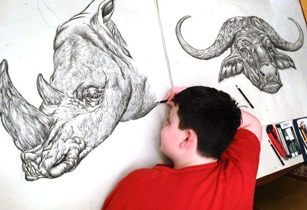 صرف یادداشت کی بنیاد پر جانوروں کی حیرت انگیز ڈرائنگ بنانے والا لڑکا