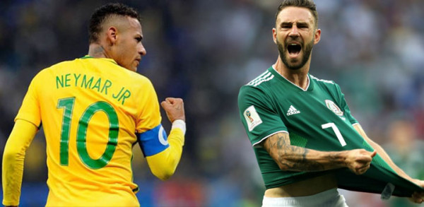 فٹبال ورلڈکپ میں پیر کو پری کوارٹر فائنل میں برازیل اور میکسیکو کی ٹیمیں مدمقابل آئیں گی۔