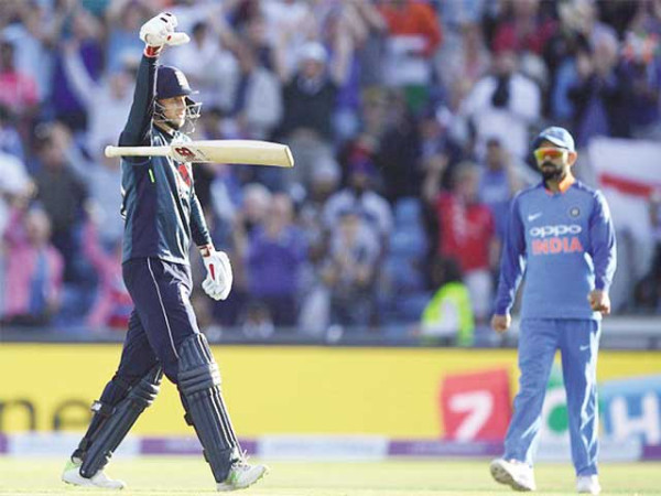 بھارت کے خلاف تیسرے ون ڈے میں سنچری کی تکمیل پر جوئے روٹ کی جانب سے بیٹ نیچے پھینکنے پر کپتان ایون مورگن حیران رہ گئے۔