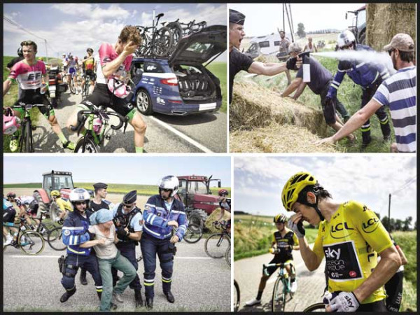 ٹورڈی فرانس کسانوں کا احتجاج پولیس کی آنسوگیس سے رائیڈرز بھی متاثر