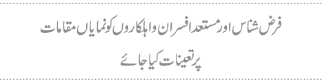 فرض شناس اور مستعد افسران و اہلکاروں کو نمایاں مقامات پر تعینات کیا جائے.
