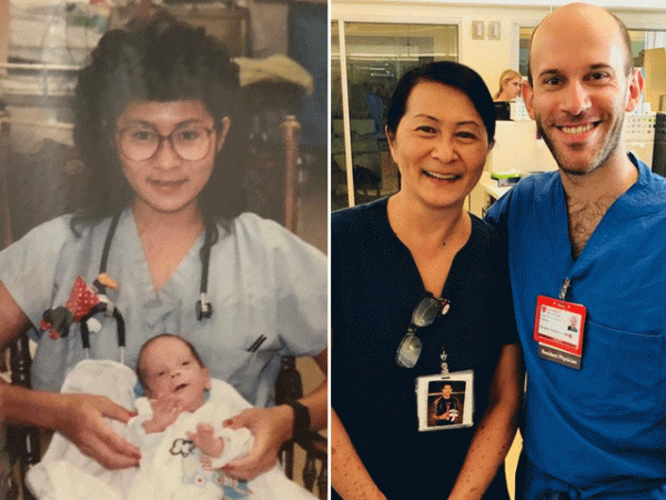 ڈاکٹربرینڈین کی 28 سال پہلے اسی اسپتال میں قبل ازوقت پیدائش ہوئی تھی تونرس ولما وونگ ہی ان کی دیکھ بھال کرتی تھیں