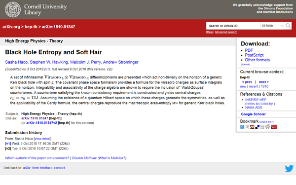لیکن اب اسٹیفن ہاکنگ کے ہارورڈ اور کیمبرج کے ساتھیوں نے ایک اور تحقیقی مقالہ پیش کیا ہے جس میں اسٹیفن ہاکنگ کی بھی کچھ تحقیقات شامل ہیں۔ اس مقالے میں بلیک ہولز پر بحث کی گئی ہے جو اسٹیفن ہاکنگ کی خصوصی دلچسپی کا موضوع تھا۔ یہی وجہ ہے کہ بلیک ہول کا ذکر سامنے آتے ہی ہاکنگ کا نام ذہن میں آجاتا ہے۔