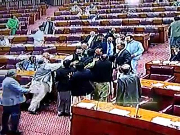 حکومتی رکن عبدالمجید نیازی نے مبینہ طور پر گالم گلوچ کی جس پر پیپلز پارٹی رہنما رفیع اللہ انہیں مارنے کے لیے دوڑے