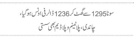 سونا 1295 سے گھٹ کر 1236 ڈالر فی اونس ہوگیا، چاندی، پلاٹینم وپلاڈیم بھی سستی