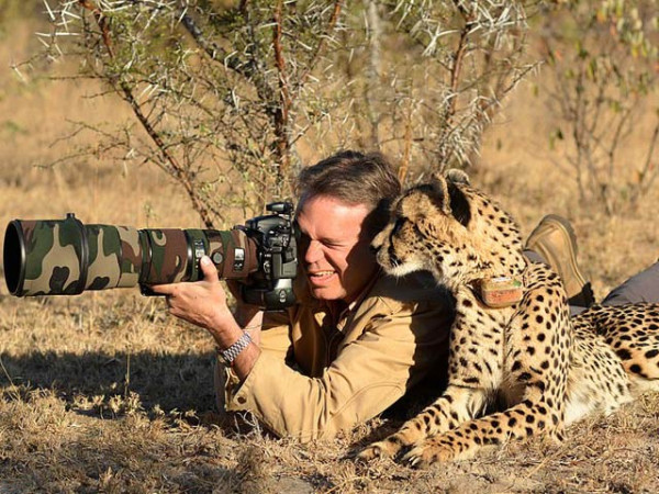 دنیا کے مشہور وائلڈ لائف فوٹوگرافر کِرس ڈیو پلیسِس کسی عمدہ منظر کو قید کرنا چاہ رہے تھے کہ ایک جنگلی چیتا ان کی مدد کو آپہنچا۔ فوٹو: ڈیلی میل