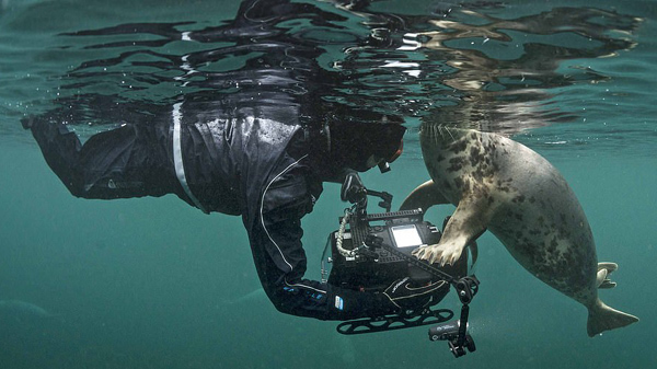 اس تصویر میں پانی کے نیچے کیمرے کو سمندری سیل نے اپنانے کی کوشش کی ہے۔