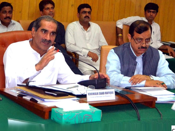 لاہور: وفاقی وزیرریلوے خواجہ سعد رفیق ریلوے ہیڈ کوارٹرز میں پراجیکٹ ڈائریکٹرز کے اجلاس کی صدارت کررہے ہیں۔ فوٹو : آئی این پی