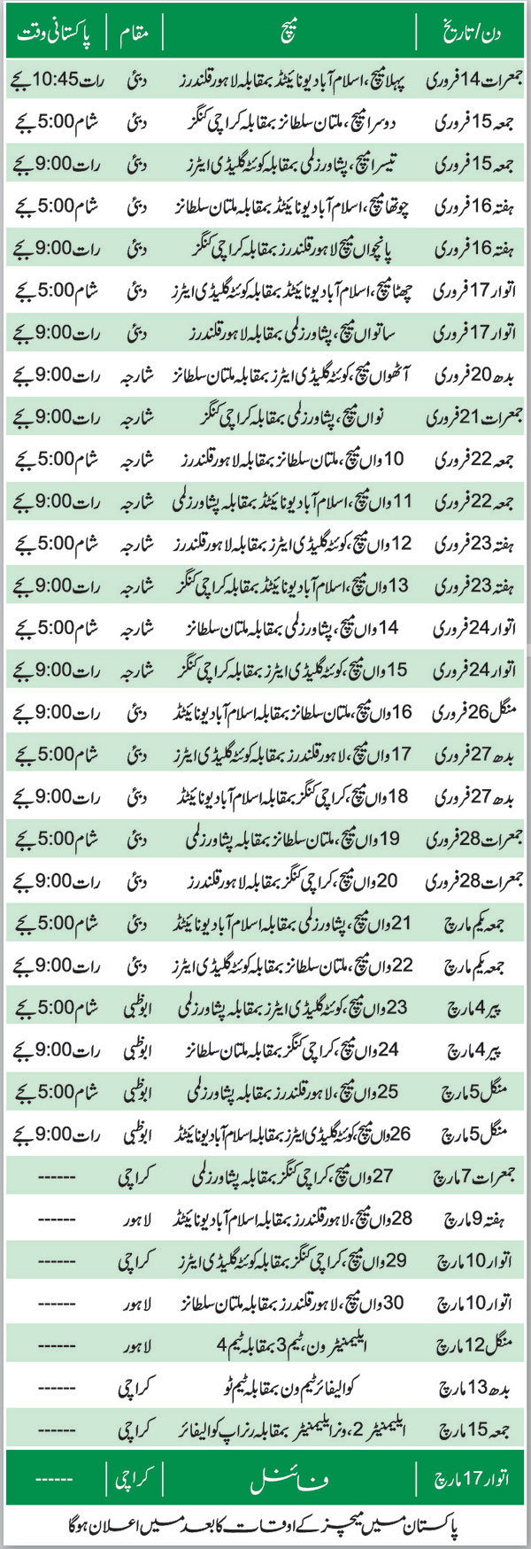شائقین بے تاب، پلیئرز پْرجوش،پی ایس ایل کا میلہ آج سجے گا۔