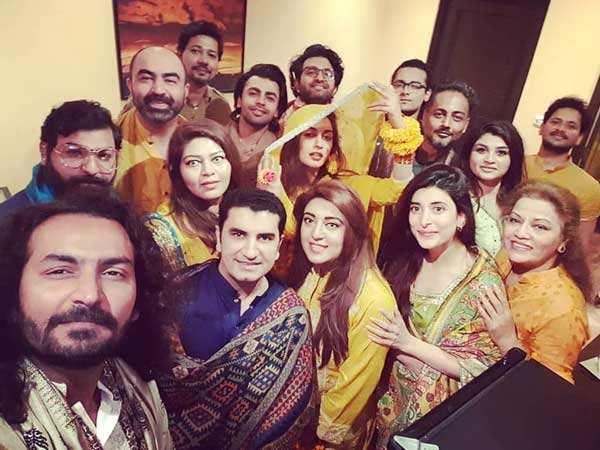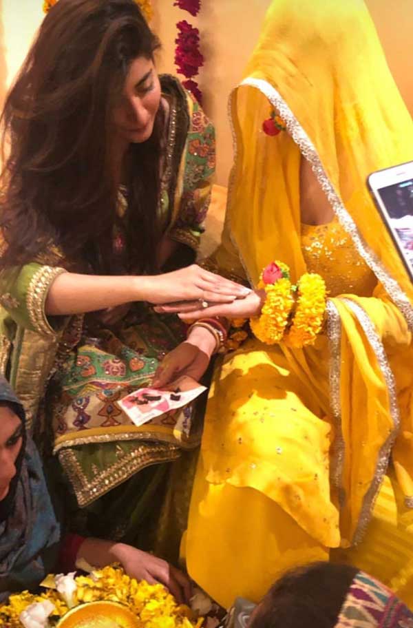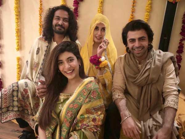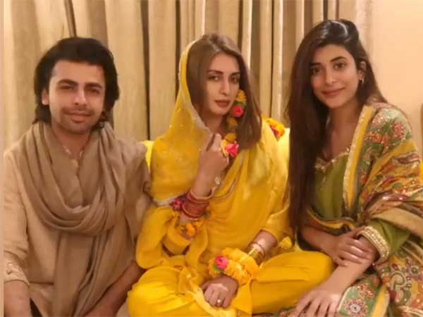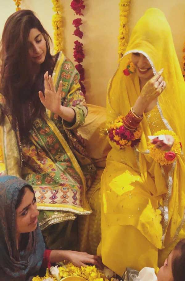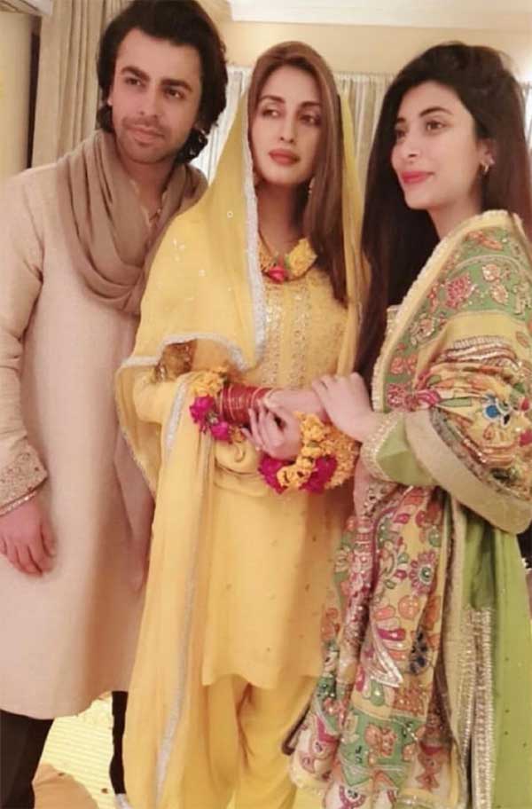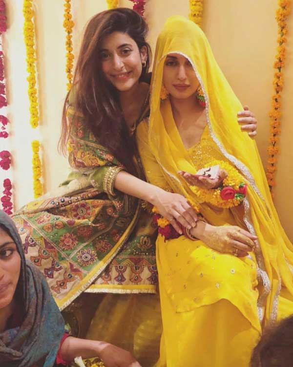 ایمان علی کی مایوں کی تقریب میں اداکارہ عروہ حسین اورفرحان سعید نے بھی شرکت کی۔
