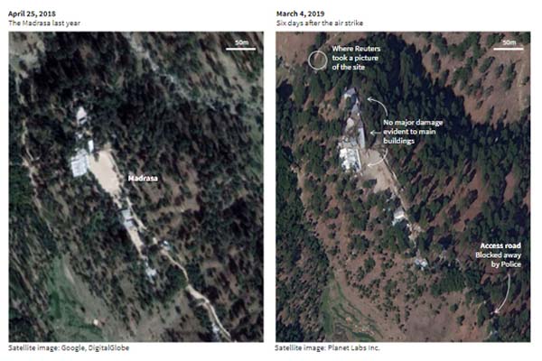 رائٹرز نے بالاکوٹ کی ایک سال قبل اور حملے کے بعد کی سٹیلائٹ تصاویر جاری کردیں جس میں صرف درختوں کا نقصان دیکھا گیا