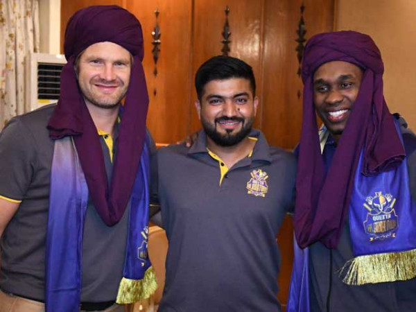 جناح انٹرنیشنل ائیر پورٹ پر کوئٹہ گلیڈی ایٹرز کے مالک ندیم عمر اور ٹیم منیجر اعظم خان نے تمام غیر ملکی کھلاڑیوں کا بلوچی پگ پہنا کر شاندار استقبال کیا۔ کوئٹہ گلیڈی ایٹرز ٹیم کے غیر ملکی کھلاڑیوں میں شین واٹسن، ڈیوائن براوو، رائیلی روسو، ڈیوین اسمتھ اور ہیری گرنی کے علاوہ ٹیم مینٹور سر ویوین رچرڈز بھی شامل ہیں۔
