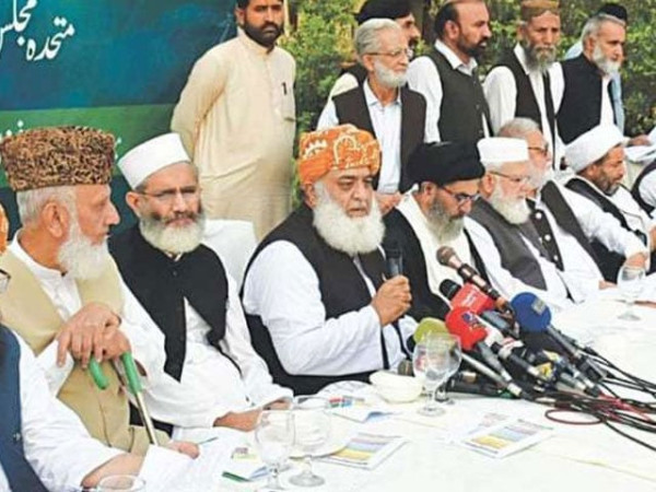 ایم ایم اے کے قائدین کے ہمراہ پریس کانفرنس کرتے ہوئے مولانا فضل الرحمان کا کہنا تھا کہ گزشتہ 6، 7 ماہ میں پاکستان کو جس طرح مسائلستان بنایا گیا ہے ہمارا متفقہ مؤقف ہے کہ ہم پاکستان کی نظریاتی شناخت کے لئے قومی سفر جاری رکھیں گے۔