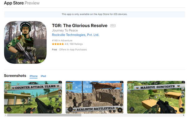 پاک فوج کے ترجمان میجر جنرل آصف غفور کی ٹویٹ کے مطابق ''گلوریئس ریزولو جرنی ٹو پیس '' نامی گیم ایک آرمی ایڈونچر شوٹنگ گیم ہے جس میں کھلاڑی بری فوج، فضائیہ، بحریہ، کمانڈوز یا کسی اور قانون نافذ کرنے والے ادارے کا حصہ بن جاتا ہے اور فرسٹ پرسن شوٹر کی طرح اپنے مشن انجام دیتا ہے۔