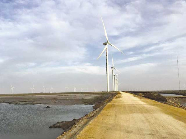 سندھ کے علاقے گھارو میں50 میگاواٹ کا زیفر پاور ونڈ فارم برطانیہ کے تعاون سے قائم کیا گیا۔ فوٹو: فائل