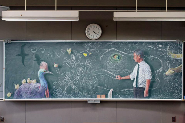 جاپان میں بلیک بورڈ پر حیرت انگیز پینٹنگ بنانے کا رحجان