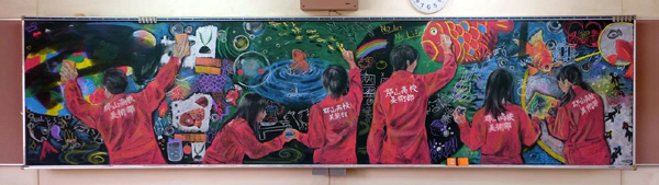 جاپانی اسکولوں میں جب چھٹی کی گھنٹی بجتی ہے تو بچے کچھ دیر کے لیے اسکول میں رک جاتے ہیں اور ان میں مصوری کے ماہر بچے مل کر بلیک بورڈ پر اپنے فن کا مظاہرہ کرتے ہیں اور تھوڑی دیر میں تختہ سیاہ کو ایک کینوس میں بدل کر خوبصورت پینٹنگز بناتے ہیں لیکن اس کے لیے رنگ برنگی چاک استعمال ہوتی ہیں۔