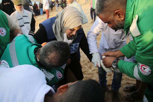 غزہ کی پٹی پر اسرائیلی فوج کی مظاہرین پر براہ راست فائرنگ اور شیلنگ سے 51 افراد زخمی ہوئے جن میں سے ایک فاطمہ حجازی ہیں جن کے سر پر گولی ماری گئی ہے اور وہ شدید زخمی حالت میں زیر علاج ہیں جب کہ خاتون صحافی سفینہ کا ہاتھ زخمی ہوا دیگر زخمیوں میں 10 بچے، 2 خواتین اور 3 پیرا میڈیکل اسٹاف سمیت نوجوانوں کی بڑی تعداد شامل ہے۔