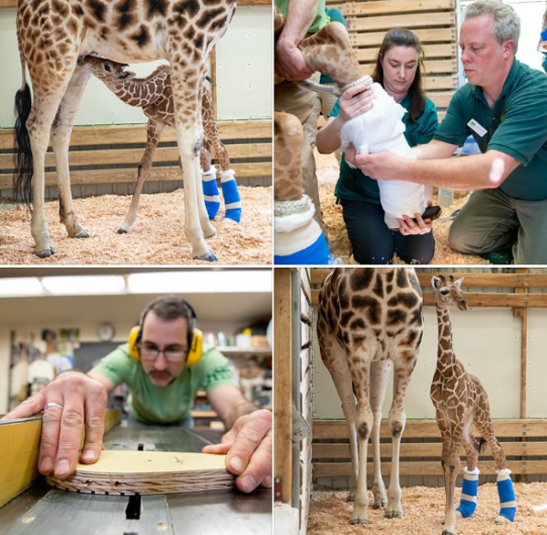 ووڈلینڈ پارک زو میں پیدا ہونے والا زرافے کے پچھلے پیروں میں نقص تھا جسے اب دور کیا جارہا ہے