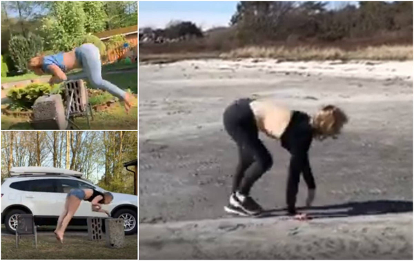 گھوڑے کی طرح دوڑنے اور چھلانگ لگانے والی خاتون کی ویڈیو وائرل