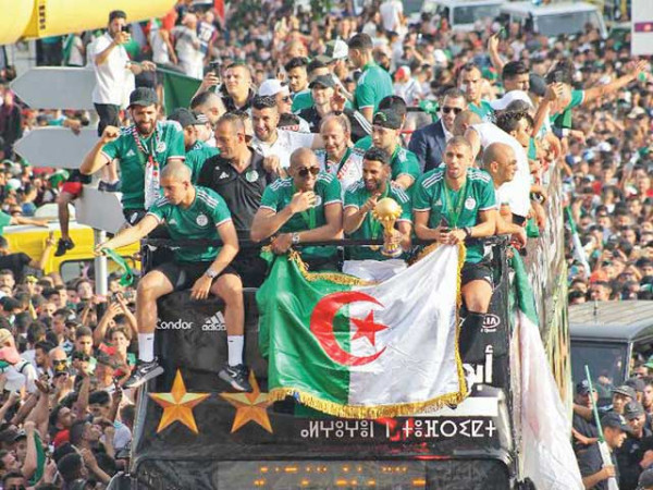 اس موقع پر بس میں سوار سوفیان فیگولی، گول کیپر ایزیڈین ڈوکھا ، مڈفیلڈر ریاض مہریز اور فارورڈ اسلام سلیمانی نے اپنے مداحوں کے نعروں کا ہاتھ ہلاکر جواب بھی دیا، الجیریا نے گذشتہ دنوں فائنل میں سینیگال کو 1-0 سے مات دیکر دوسری بار علاقائی چیمپئن بننے کا اعزاز پایا تھا، تاہم اس سے قبل انھوں نے اولین ٹائٹل 1990 میں اپنے نام کیا تھا۔