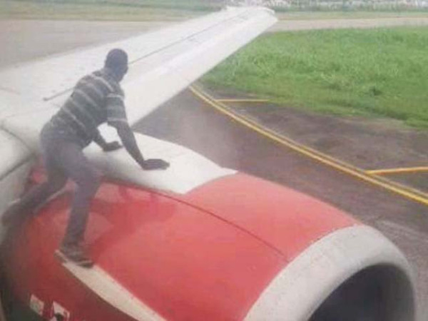 عالمی خبر رساں ادارے کے مطابق نائیجیریا کے آئیکیجا کے مرتلا محمد ایئرپورٹ پر ازمان ایئر لائن کی پرواز ٹیک آف کرنے ہی والی تھی کہ ایک اجنبی شخص اچانک کہیں سے نمودار ہوا اور چھلانگ لگا کر طیارے کے دائیں بازو پر چڑھ گیا۔