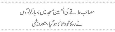 مصائب علاقے کی الحسین مسجد میں بمبار کو لوگوں نے روکا تو دھماکا ہوگیا، متعدد زخمی