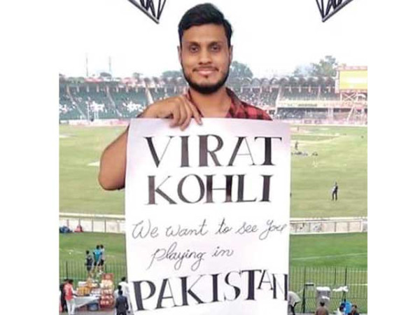پاکستانی شائق نے سری لنکا سے تیسرے ٹوئنٹی 20 میچ کے دوران ایک پلے کارڈ اٹھایا ہوا تھا جس پر کوہلی سے کہا گیاکہ وہ پاکستان آکر کھیلیں، ان کی اس تصویر کو ایک اور شائق نے ٹویٹر پر شیئر کرتے ہوئے کوہلی سے کہا کہ پاکستانی شائقین انھیں اپنے ملک میں کھیلتا ہوا دیکھنا چاہتے ہیں۔