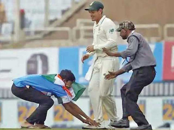 گذشتہ روز رانچی میں بھی ایک شائق سیکیورٹی کو چکمہ دے کر نہ صرف فیلڈ میں گھسا بلکہ دوڑتا ہوا جنوبی افریقی بیٹسمین کوئنٹین ڈی کک کے پاس پہنچ کر ان کے پاؤں چھونے لگا، کرکٹر اس پر حیران رہ گئے، اتنے میں سیکیورٹی اہلکاروں نے وہاں پہنچ کر اس شائق کو پکڑا اور باہر لے جانے لگے، اس کوشش میں اس کے جوتے وہیں رہ گئے۔