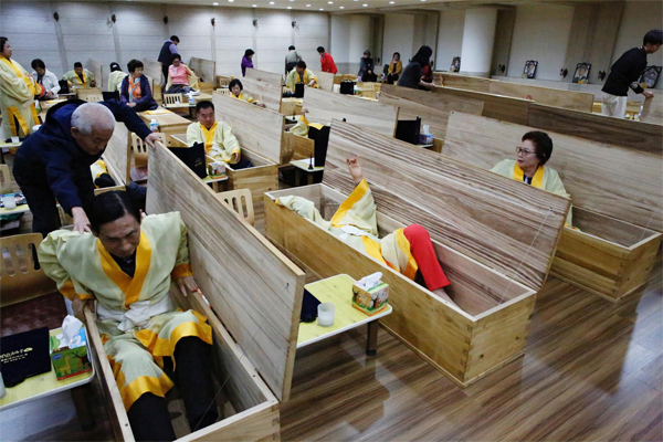 موت کی ریہرسل کروانے والے مراکز کا مقصد، جنوبی کوریا میں خودکشی کی بلند شرح کو کم کرنا ہے۔