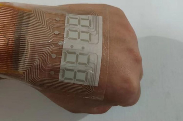 نانجیانگ یونیورسٹی کے سائنس دانوں نے دن کی روشنی میں بھی دکھائی دینے والا ڈسپلے اسٹیکر بنایا ہے جو انسان اور مشین کا حیرت انگیز ملاپ بھی ہے جسے براہِ راست انسانی کھال پر لگایا جاسکتا ہے۔