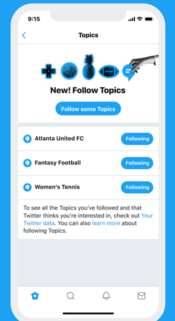 ٹوئٹر کا نام آتے ہی ہمارے ذہن میں لوگوں کے ذاتی اکاؤنٹس آتے ہیں جن میں فنکار یا سیاست داں اپنی اپنی بات کرتے نظر آتے ہیں۔ لیکن اب ٹوئٹر نے اپنے صارفین میں اضافے کےلیے موضوعات یا ٹاپکس کا آپشن بھی پیش کیا ہے۔