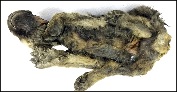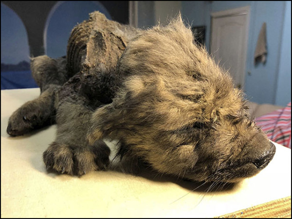 اس تصویر میں دکھائی دینے والے کتے کو سائنسدانوں نے ''ڈوگور'' کا نام دیا ہے جو آج سے 18,000 سال پہلے موجودہ مشرقی سائبیریا میں یاکوتسک کے یخ بستہ مقام پر منجمد ہو کر مرگیا تھا۔