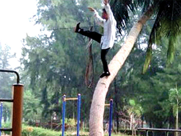 بیجنگ میں 37 سالہ چینی بزنس مین فو چوانگ مقامی یونیورسٹی مین درختوں پر چڑھ کر کنگفو کی مشقیں کرنے کا شوقین ہے ۔فوچوانگ درخت کی پتلی شاخ پر چڑھ کر پہلے اپنا توازن قائم کرتا ہے پھر کنگفو کے پوز بنا کر لوگوں کو حیران کردیتا ہے ۔ فو چوانگ کا کہنا ہے کہ ہے وہ ایسا نمائش کے لیے نہیں کرتا بلکہ اس طرح مارشل آرٹ کی مشقیں کرکے اسے سکون ملتا ہے۔
