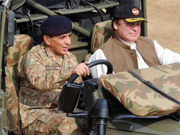 خیرپورٹامیوالی :وزیراعظم نوازشریف مسلح افواج کی جنگی مشقیں عزم نو 4دیکھنے آرہے ہیں، آرمی چیف جنرل کیانی گاڑی ڈرائیوکررہے ہیں ۔ فوٹو : اے ایف پی