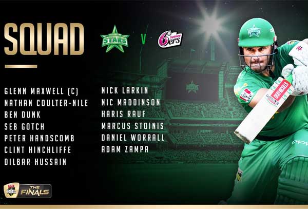 بگ بیش لیگ میں سڈنی سکسرز کیخلاف کوالیفائر میچ کیلیے میلبورن اسٹارز کے 13 رکنی اسکواڈ میں پاکستان کے حارث رﺅف اور دلبر حسین شامل ہیں۔