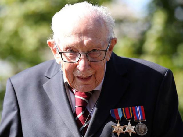 دوسری جنگِ عظیم کے کپتان ٹام مور نے 25 میٹر کے 100 چکر مکمل کرکے یہ رقم جمع کی ہے۔