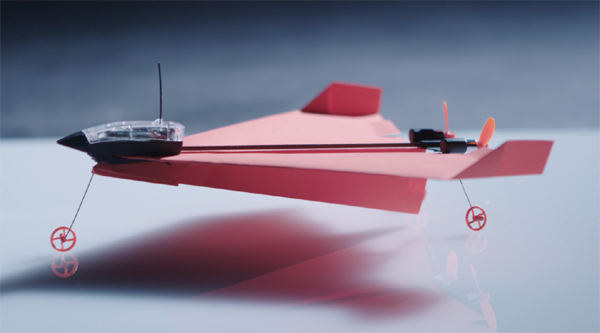 پاور اپ نامی سسٹم پر ایک ٹرانسمیٹر، موٹریں اور دیگر سرکٹ سے کسی بھی کاغذی ہوائی جہاز کو اڑایا جاسکتا ہے