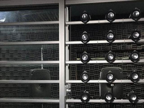 ہر اسپیکر کو ایک دوسرے سے ساڑھے بارہ سینٹی میٹر کے فاصلے پر لگایا گیا اور ان کا رخ آواز کی جانب تھا اور کھڑکی کے باہر سینسر لگائے گئے تھے۔ بعد ازاں 300 ہرٹز سے کم کی آوازوں کو کاٹنے کے لیے اسپیکروں کو ساڑھے چار سینٹی میٹر کے فاصلے پر رکھا گیا ۔