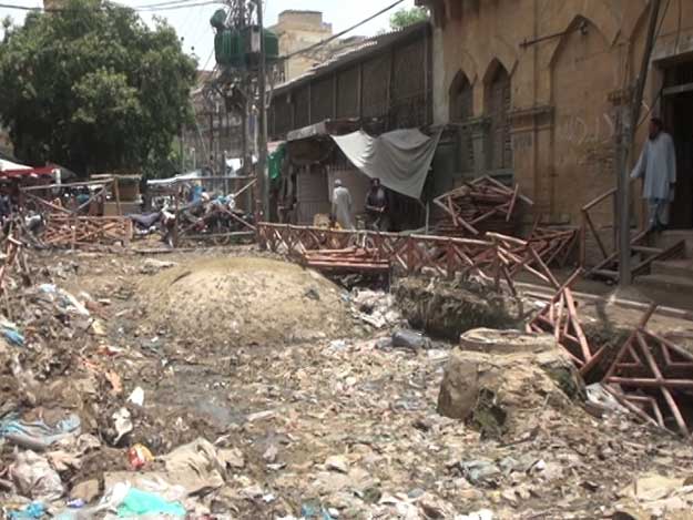 ڈینسو ہال کی عمارت کی بحالی کے پراجیکٹ کے لیے اس راستے کو سیوریج کی لائن ڈالنے کے لیے کھودا گیا لیکن چار ماہ گزرنے کے باوجود یہ کام مکمل نہ ہوسکا اور اب یہ کھدی ہوئی سڑک موت کا گڑھا بن چکی ہے۔ بارشوں کے دوران اس گڑھے نما سڑک میں کئی موٹرسائیکلیں اور گاڑیاں دھنس گئیں اور متعدد دکاندار اور گاہک بھی اس میں گر کر زخمی ہوچکے ہیں۔