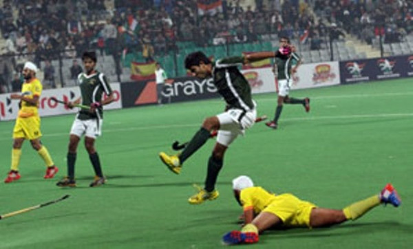 روایتی حریفوں کے مابین گھمسان کی جنگ کے بعد فیصلہ پنالٹی شوٹ آئوٹ پر ہوا، گول کیپر مظہر عباس حریف فارورڈزکے سامنے ڈٹ گئے، میچ میں کئی یقینی گول بچانے کے بعد2 پنالٹی شوٹس بھی روک کر4-2 سے فتح دلائی۔ تفصیلات کے مطابق نئی دہلی میں نویں پوزیشن کے میچ میں پاکستانی کھلاڑیوں نے بہترین اسکلز کے ذریعے حریف کو دبائو میں رکھا،ساتویں منٹ میں رضوان علی نے محمد دلبرکی جانب سے ڈی کے اندر ملنے والے پاس کو کار آمد بناتے ہوئے گرین شرٹس کو برتری دلا دی جو پہلے ہاف کے اختتام تک برقرار رہی، وقفے کے بعد بھارتی فارورڈ میں نئی جان آگئی اور حریف گول پوسٹ پر حملوں کا سلسلہ شروع کردیا، کھیل ختم ہونے سے5 منٹ قبل گویندر سنگھ نے پنالٹی کارنر پر گول کرتے ہوئے مقابلہ برابر کردیا، مقررہ وقت میں مقابلہ ایک، ایک گول سے برابر رہنے کے بعد امپائرز نے میچ کو فیصلہ کن بنانے کیلیے دونوں ٹیموں کو 5,5 پنالٹی شوٹس آئوٹس دیں، پاکستان کی طرف سے محمد عرفان نے حریف گول کیپر کو خوبصورتی سے ڈاج دیتے ہوئے گول کردیا، گویندر سنگھ نے بھی موقع ضائع نہ کرتے ہوئے میچ کو برابر کردیا۔